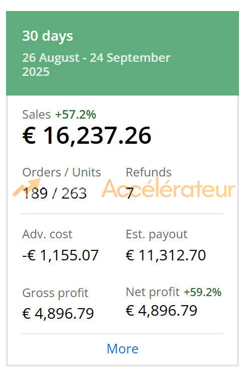 Notre équipe — Séb, Alex et Thibaut — cumule +12 Millions € de ventes sur Amazon et réalise aujourd’hui +4,5M€ de chiffre d’affaires par an.