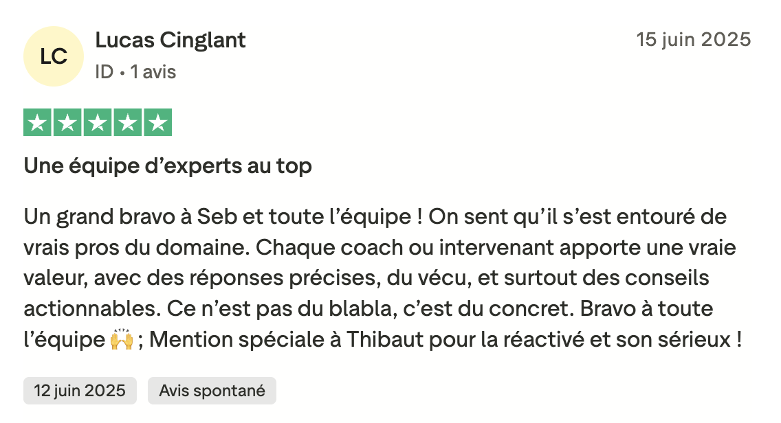 Pour réussir, il est essentiel d’être entouré de personnes qui partagent vos ambitions. C’est pourquoi nous avons créé un groupe mastermind privé regroupant des vendeurs actifs qui échangent et s’entraident au quotidien..